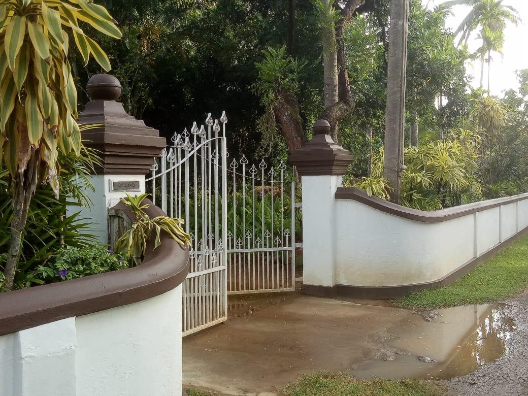 On either side of the main entrance gate, the architecture of the white wall with a sober brown lining defines the boundaries of your property, and its equal lengths center your domain and gives this grandiose colonial look to it.